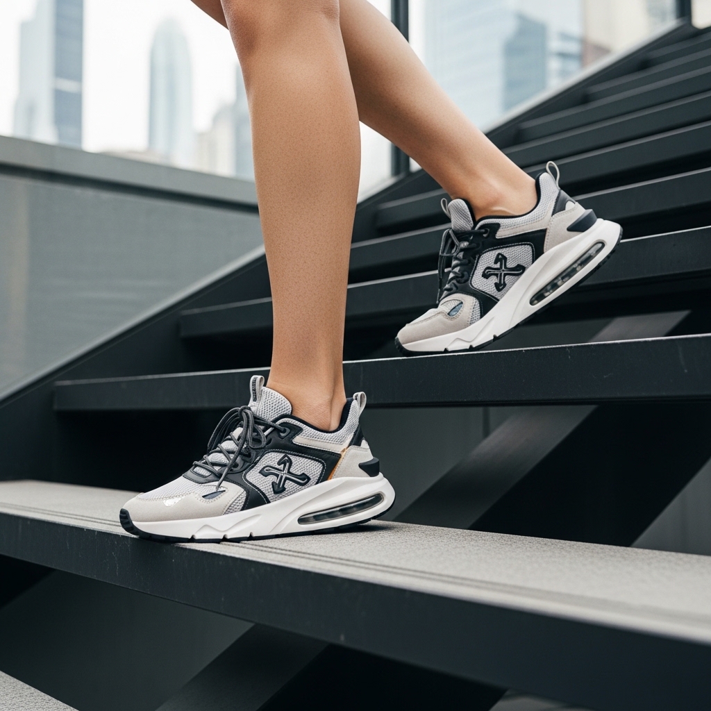 • 발바닥 전체를 디디세요. 발가락 끝으로만 걸으면 종아리에 무리가 갈 수 있어요. 발바닥의 앞부분부터 중간까지 충분히 계단에 닿도록 딛는 것이 좋아요.